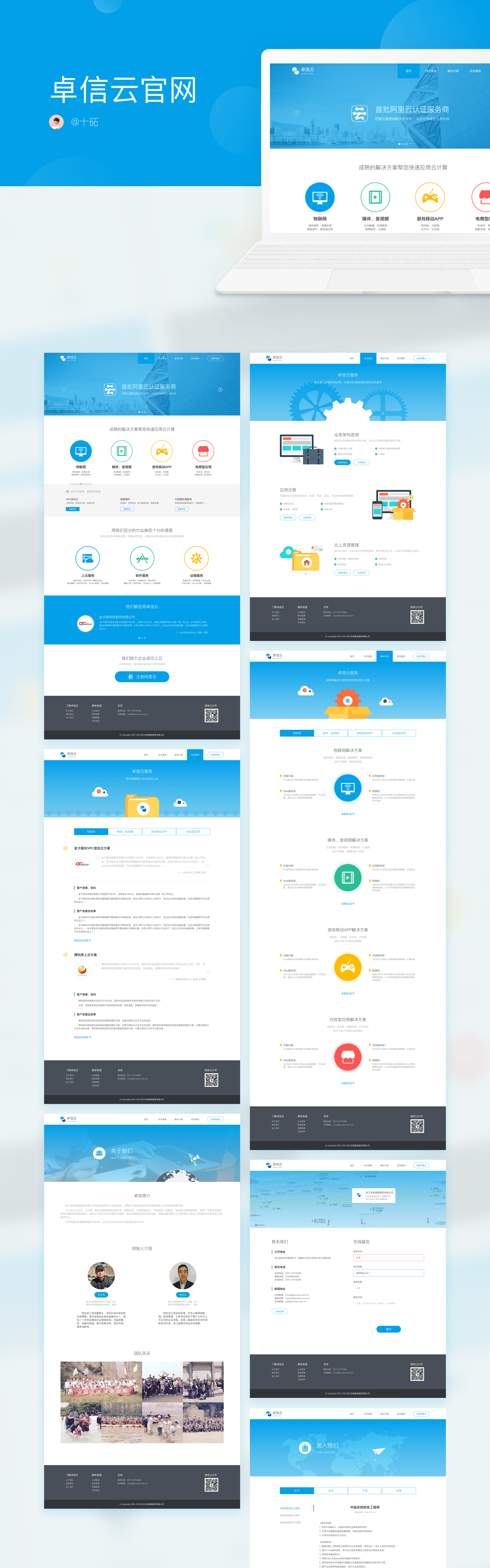 为卓信公司设计的一套网站,对方偏向于清爽简洁的风格,整个界面设计以扁平、明快为主。
